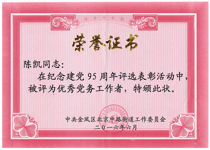 陳凱榮獲優(yōu)秀黨務(wù)工作者