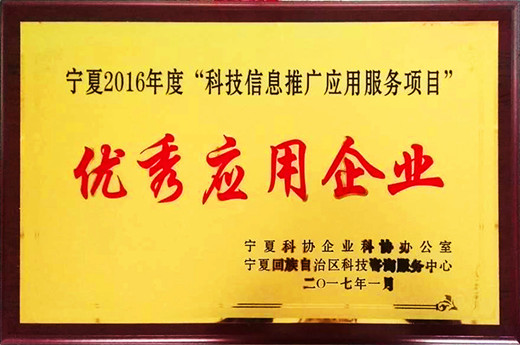 寧夏2016年度“科技信息推廣應(yīng)用服務(wù)項(xiàng)目”優(yōu)秀應(yīng)用企業(yè)