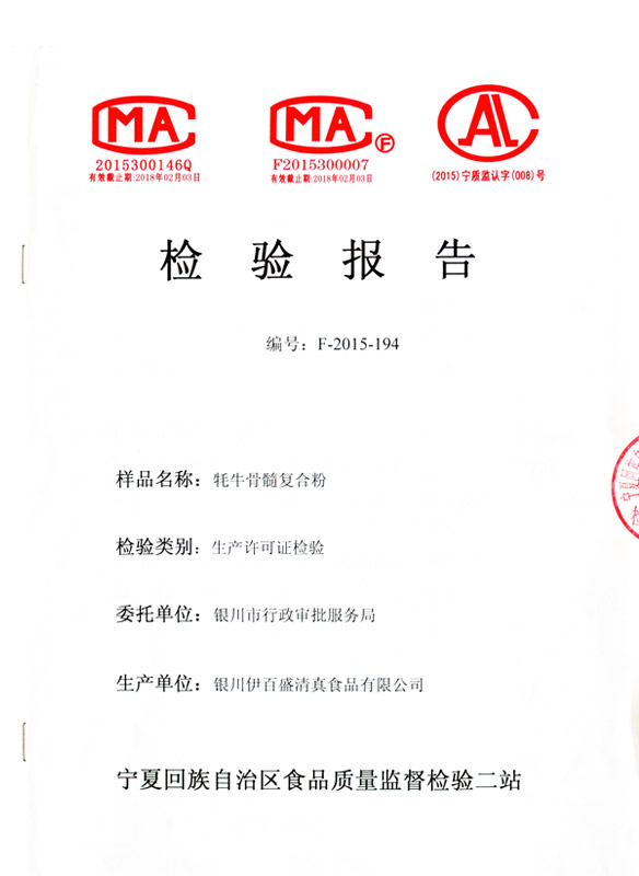 牦牛骨髓復(fù)合粉檢驗(yàn)報(bào)告