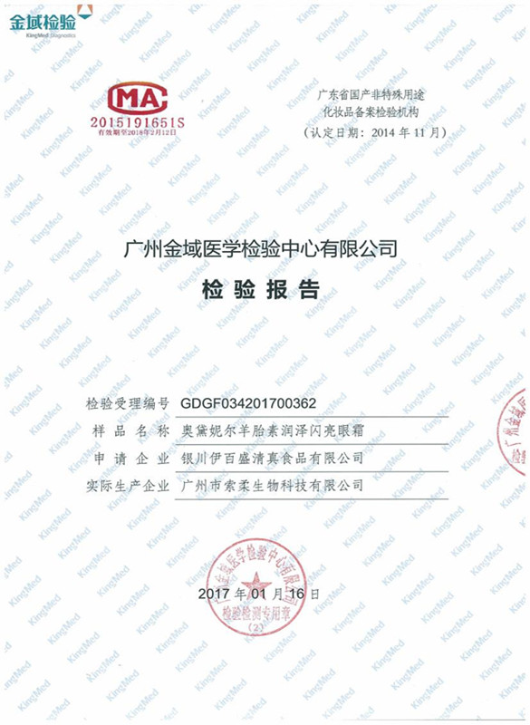 奧戴妮兒羊胎素潤(rùn)澤閃亮眼霜檢驗(yàn)報(bào)告