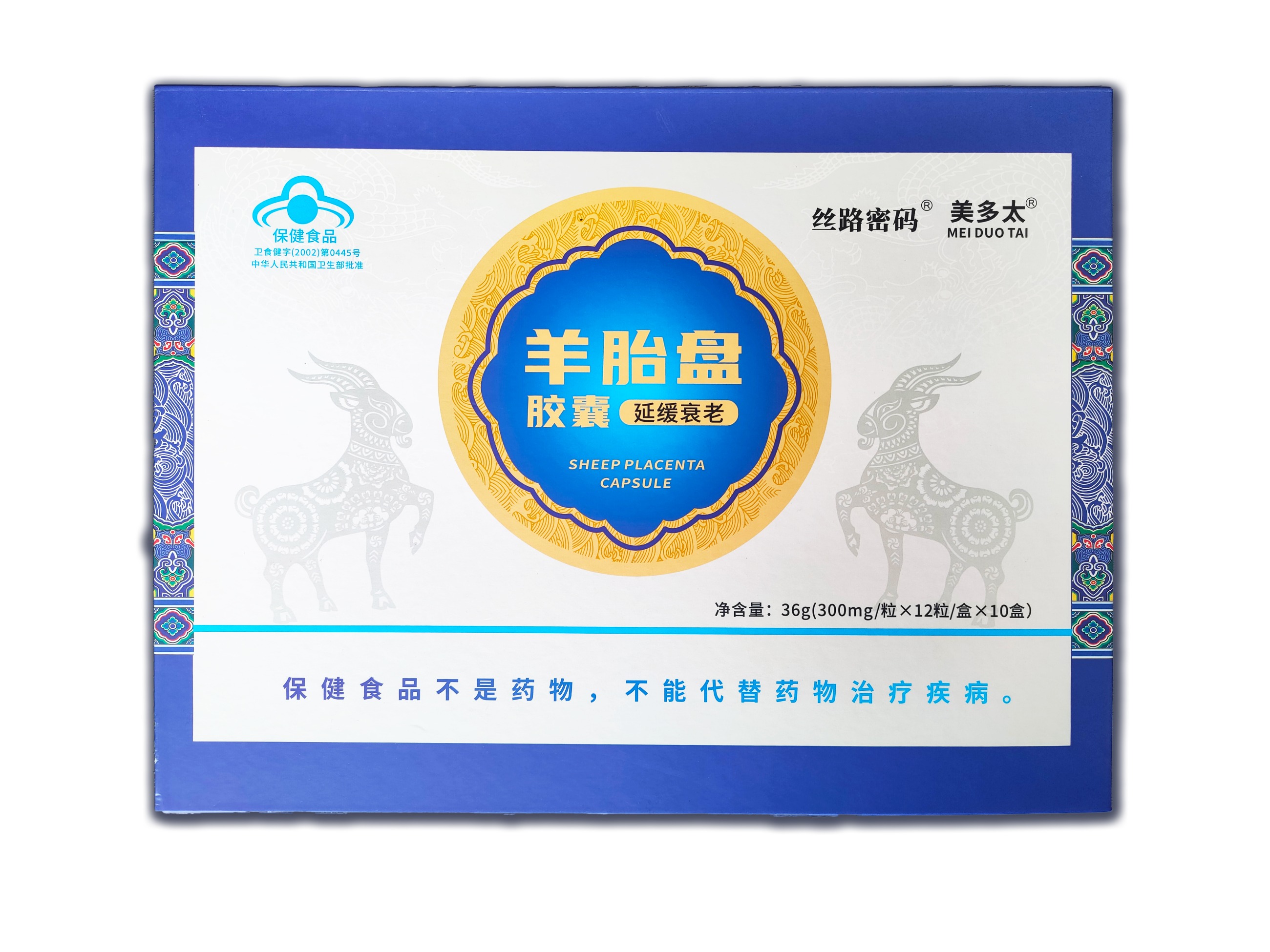 本品是以羊胎盤、淫羊藿、菊花、紅花為主要原料制成的保健食品,經(jīng)功能試驗(yàn)證明,具有延緩衰老的保健功能。
